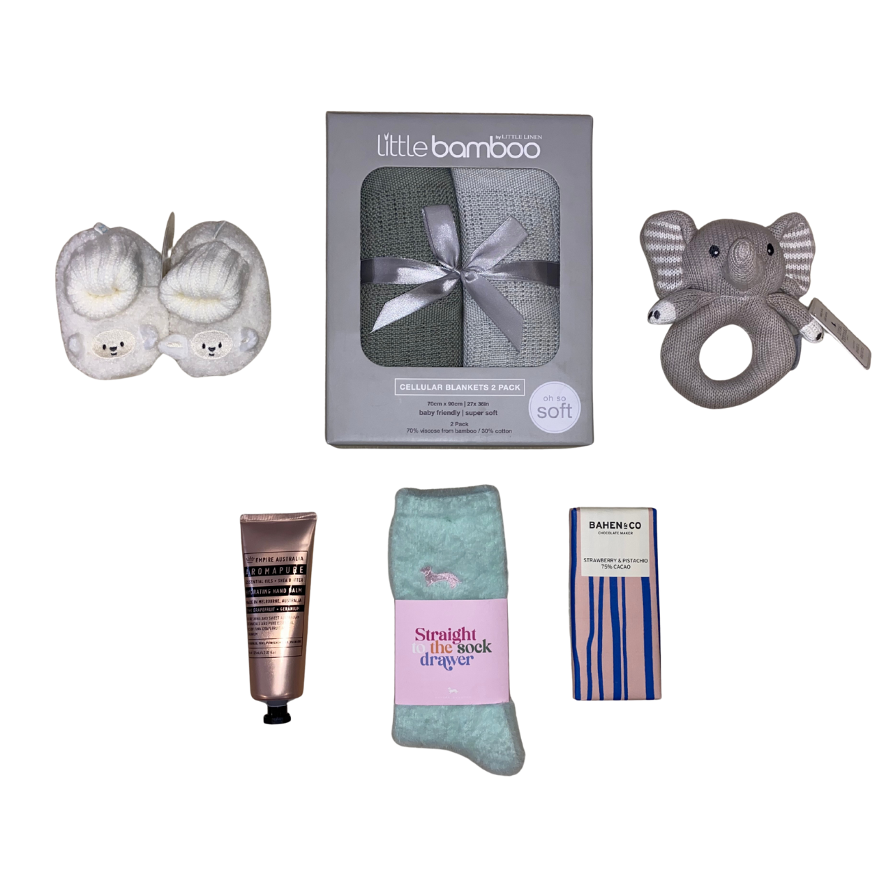 A baby gift box bundle that honours the bond - comfort for baby, care for Mum, and love all around.
