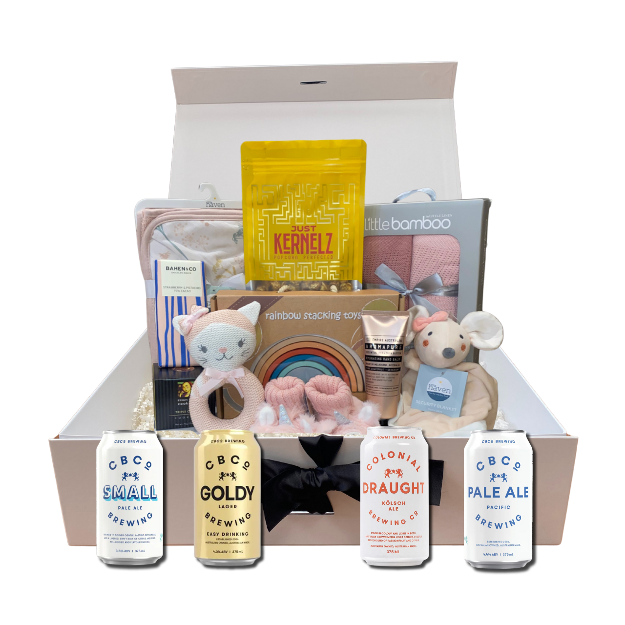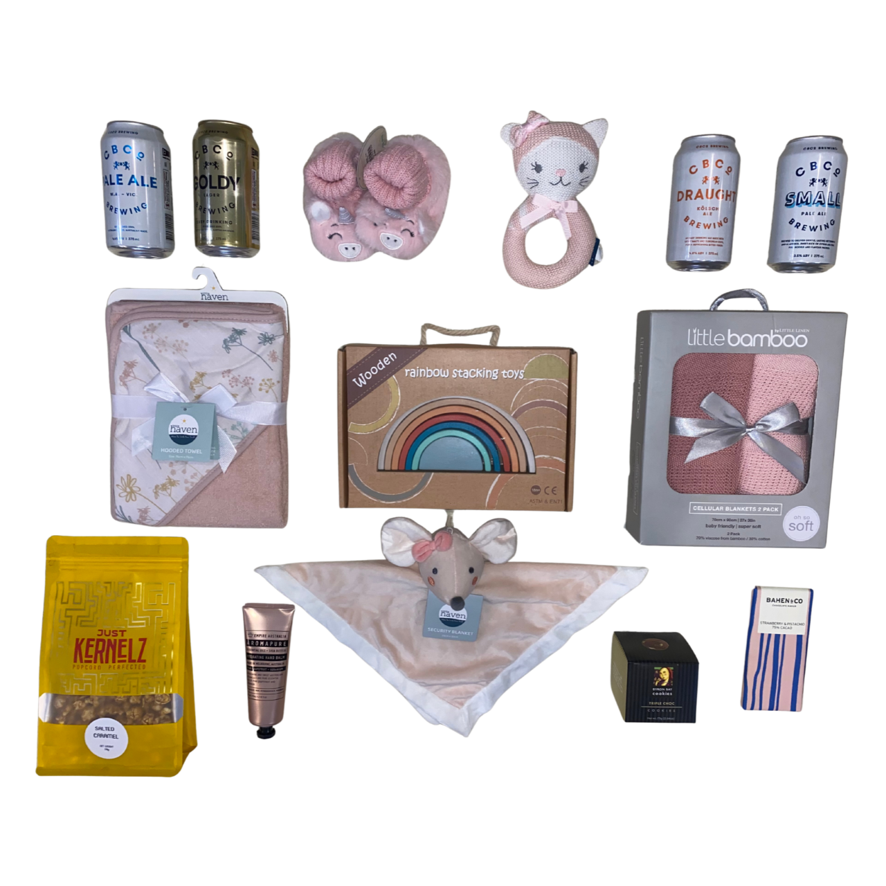 Cute stuff for bub, comfort for Mum, and a cold one for Dad. Cheers to new beginnings!