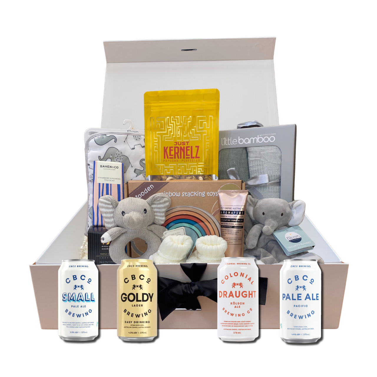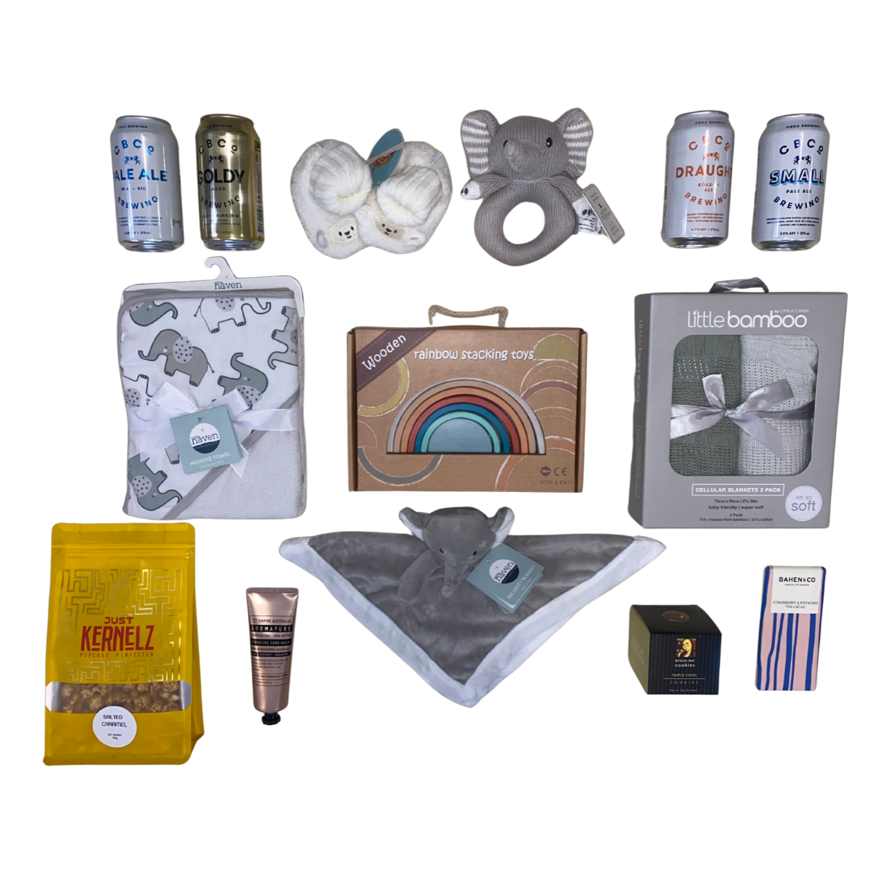 Cute stuff for bub, comfort for Mum, and a cold one for Dad. Cheers to new beginnings!