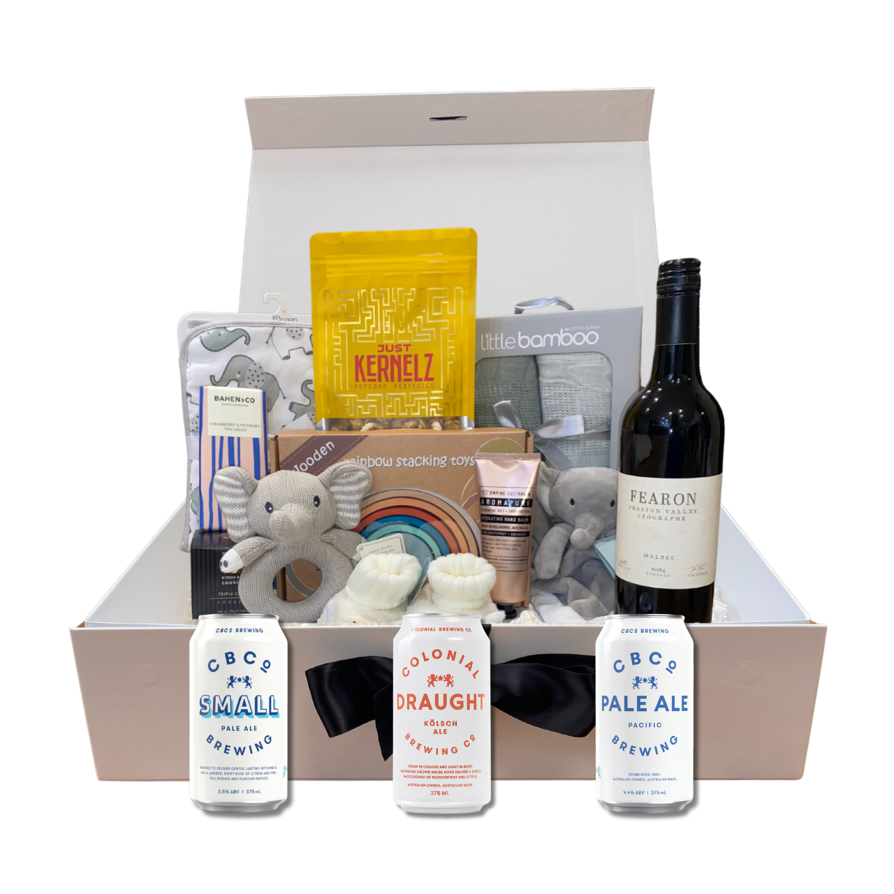 A wholesome mix of baby essentials, parental self-care, beer for breaks, and wine for winding down.