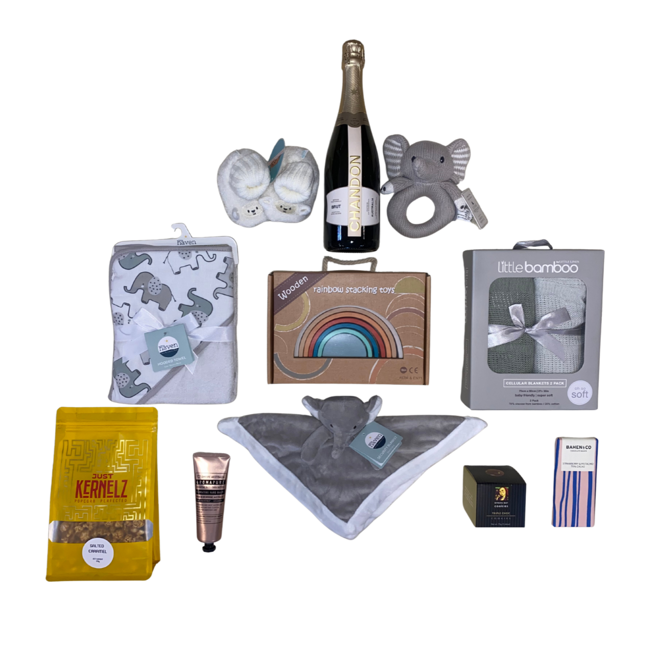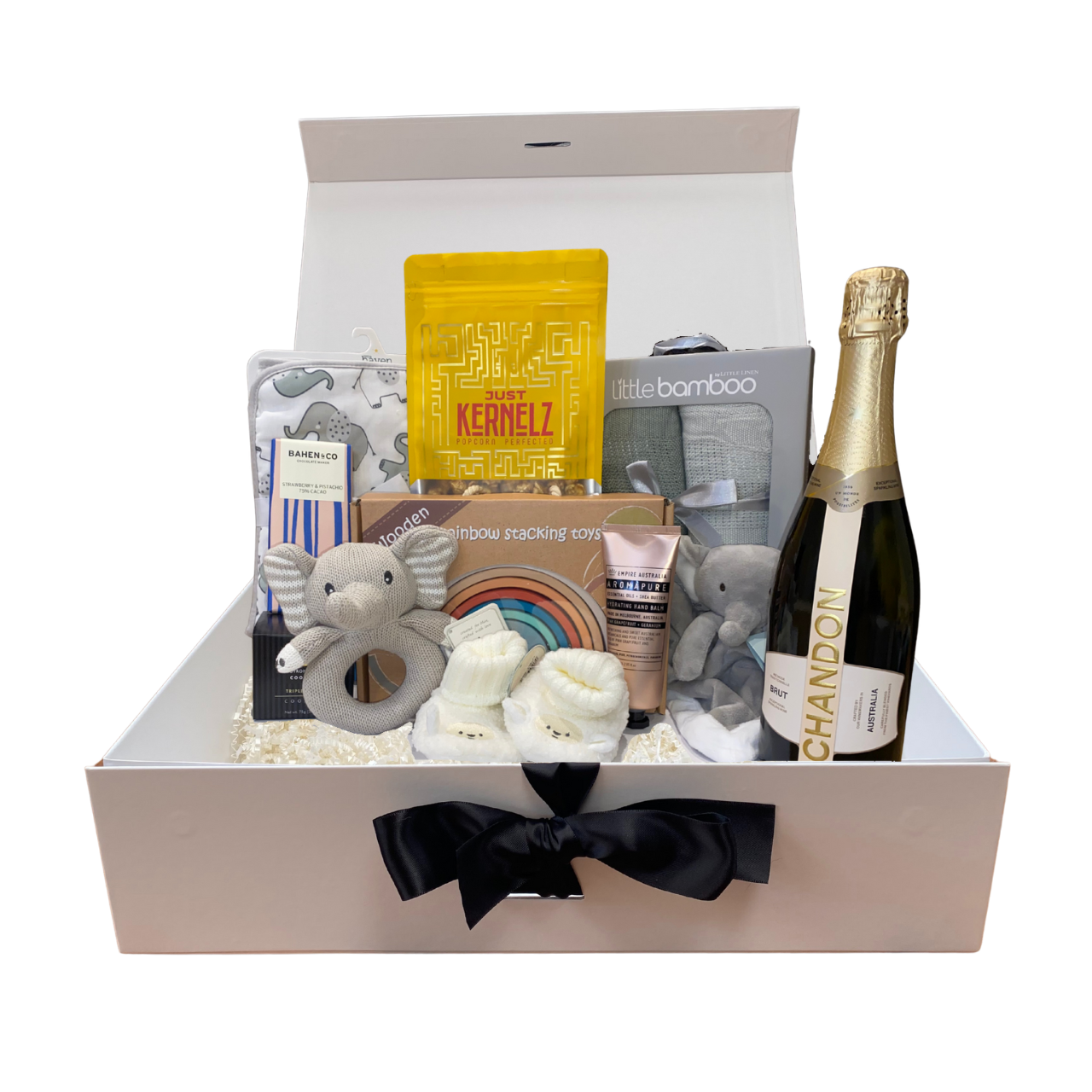 Baby goodies, feel-good treats, and a sparkling bottle of Chandon for those milestone moments (big or small).