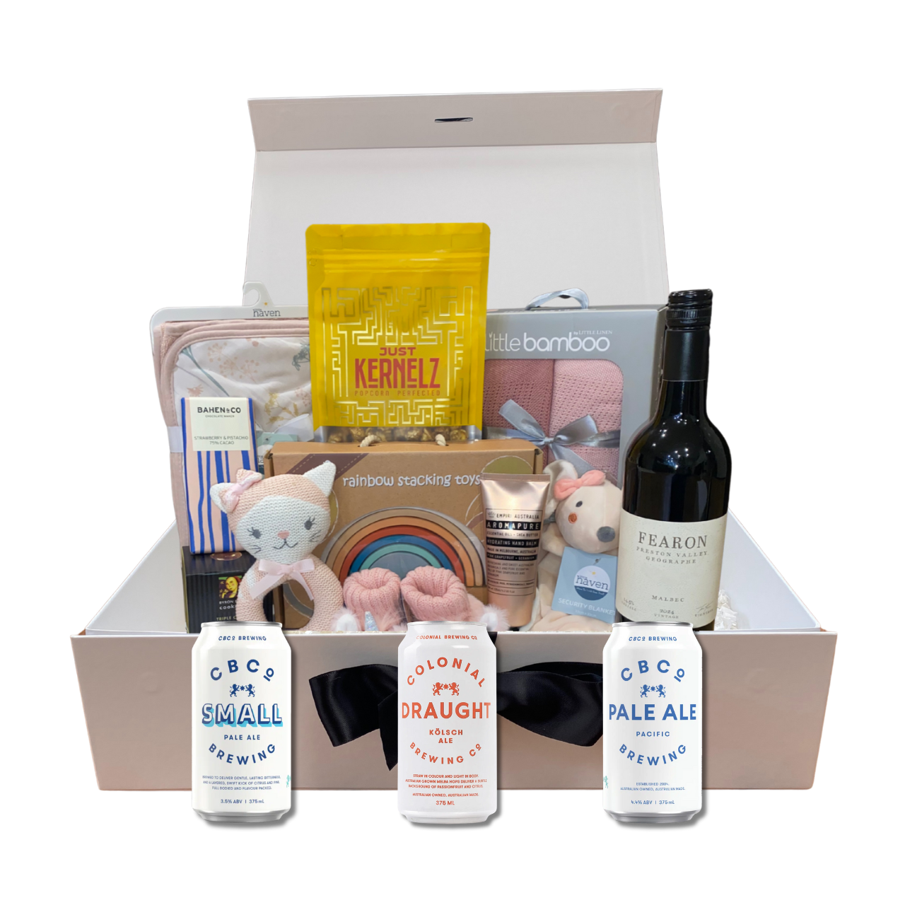 A wholesome mix of baby essentials, parental self-care, beer for breaks, and wine for winding down.