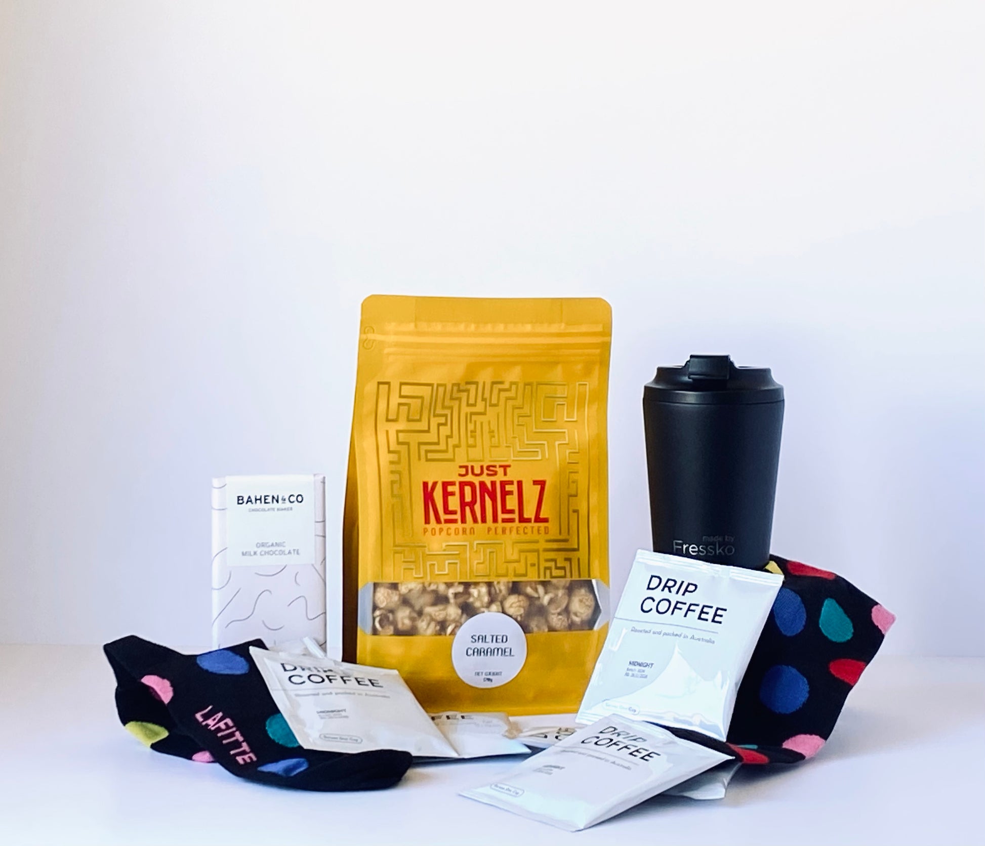 A gift box full of rich coffee and feel-good gear to keep him going.